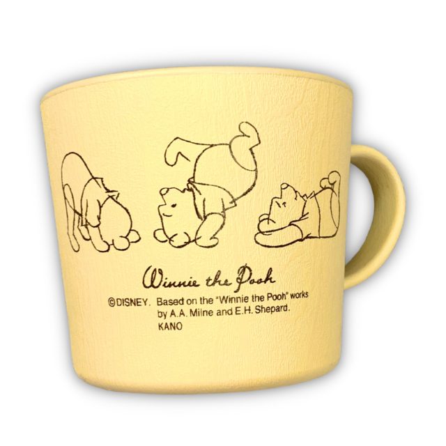 プレートとマグカップは、プーさんがでんぐり返しをするイラストが描かれています。