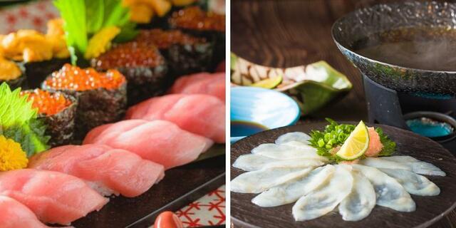 内容:『高級寿司70種(大トロ、いくら、うに含む)』+『期間限定!ふぐしゃぶ・ぶりしゃぶ】食べ放題』