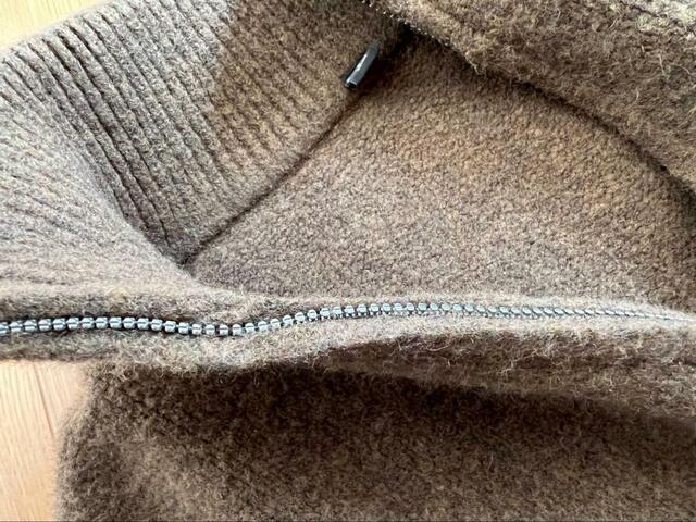 見た目もかわいい「スフレヤーンハーフジップセーター」ですが、着てみると生地が分厚くもちもちとして、とてもあたたかいのも魅力の一つです。