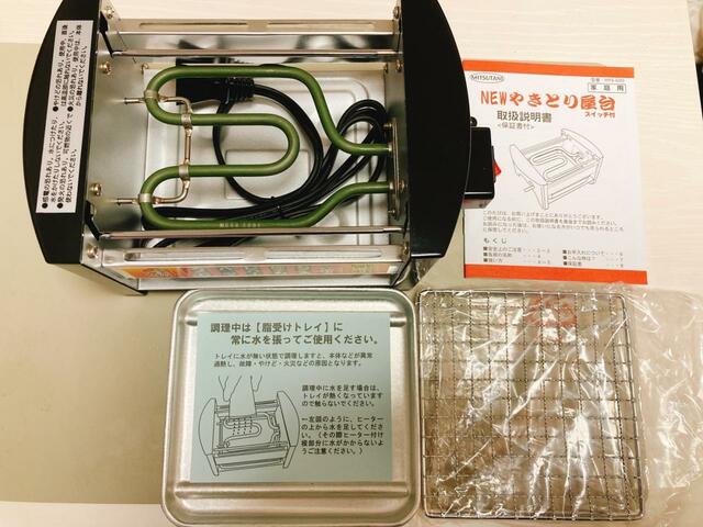 箱を開けてみると、使うのが難しい部品などは一切なく、脂受けトレイに水を入れてコンセントを繋げ、スイッチを入れたら簡単に焼くことができます!