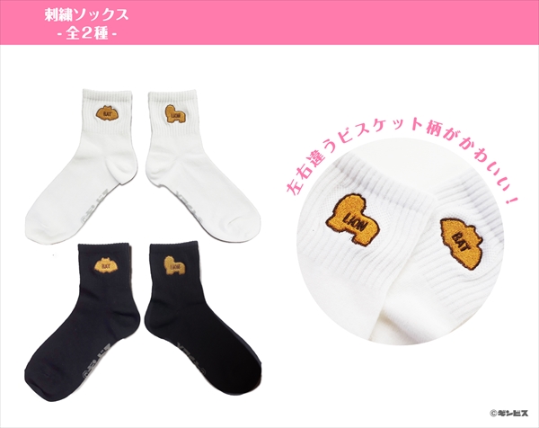 左右違うビスケットの柄が可愛いソックス。白と黒なので、合わせやすいのもいいですね!