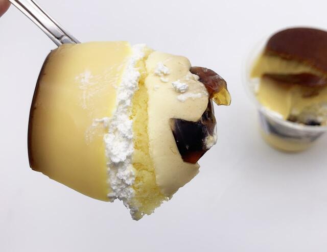 せっかくなので、下から上までをたっぷりスプーンで食べましたが、底部のプリンが比較的標準な味わいなのに対し、上部はなめらかで濃厚な味わい。