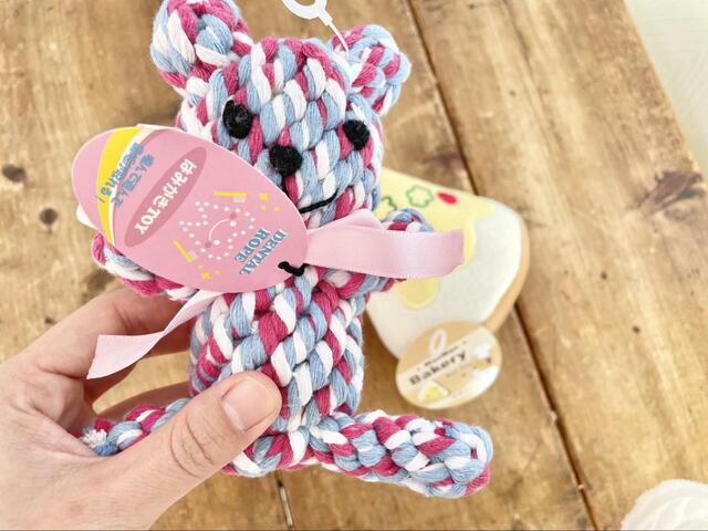 「歯磨きトイ デンタルロープベア」は、硬めのロープで編んである、かみごたえ抜群のロープベアです。