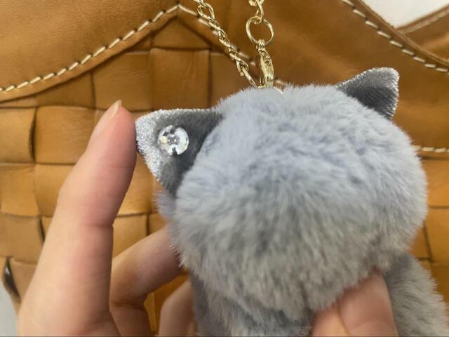 こちらはネコの形をしたバッグチャームで、うさぎと同様にグローブホルダーとして使用できます。