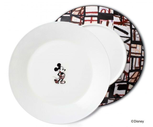 シンプルなテーブルウェアのサイド部分には、作家によるアート作品を配置し、想像力の広がるデザインに。