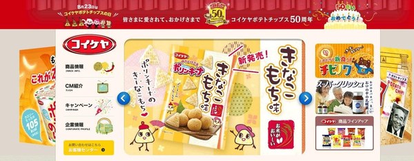 ポテトチップ、ドンタコス、カラムーチョ、ポリンキーなどのスナック系菓子の湖池屋。