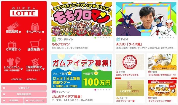コアラのマーチ、パイの実、チョコパイ、ガム類などでおなじみのロッテ。