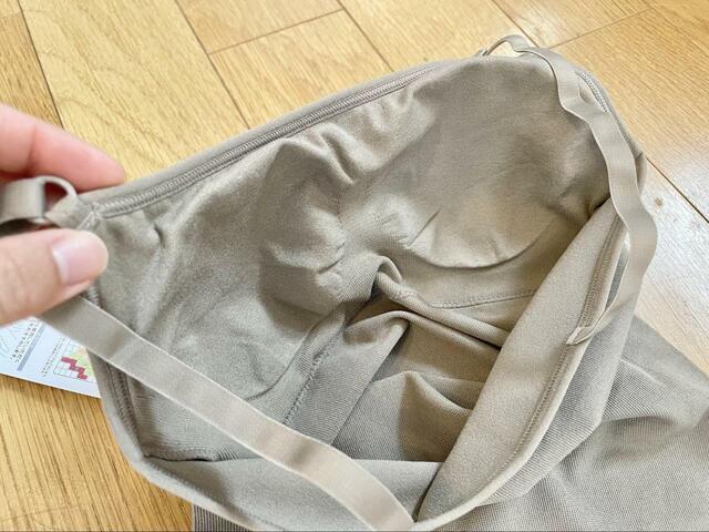 キャミソールの内側には厚手のパッドが入っていて、1枚着用すればブラジャーは不要。