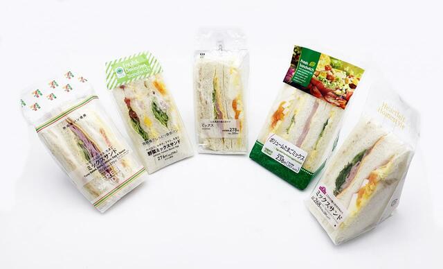 コンビニの売れ筋商材の一つ、サンドウィッチ。中でもミックスサンドは、各コンビニともオリジナル商品をラインナップしておりド定番サンドと言って良いでしょう。