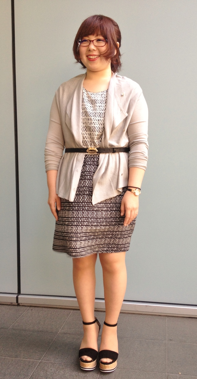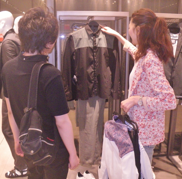 そしていよいよ、店に入ります。ここから美穂さんの表情が変わりました。笑顔なのですが、目が笑っていません。研ぎ澄まされた刀のように、服を見つめて、選んでいきます。