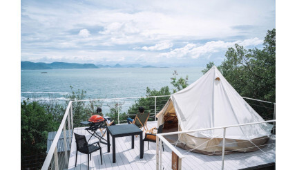 今年8月に岡山県渋川海岸にオープンした「てんとうみ」は、海まで徒歩0分の高台に設置されたベルテント。オリジナルバレルサウナでは、最高の景色を楽しむことができ、海を見ながら波の音を聴いてリフレッシュできる施設となっている。