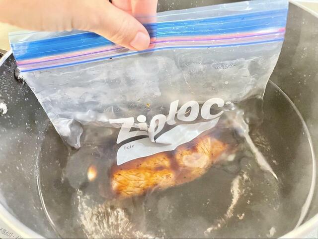 2. ジップロックに()内のタレ材料と牛肉の塊を入れる