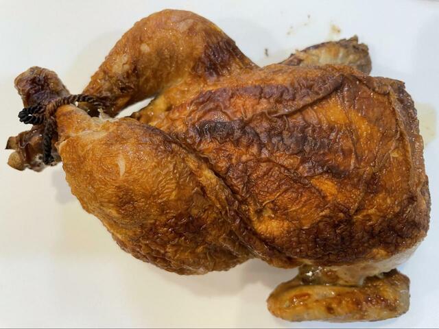 袋から出すと、しっとり熱々のローストチキンの出来上がりです!お肉の良い香りが漂ってきて、食欲がそそられます。また、表面は綺麗な焼き色が付いていて、見た目もとっても美味しそうです。