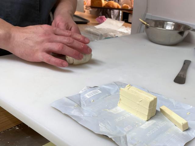 取材時、青柳シェフはクロワッサンを作っている真っ最中。
