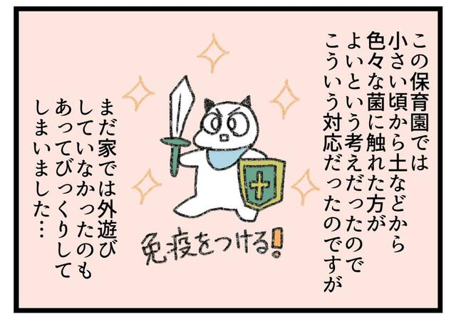 土から菌を体内に入れるのはむしろ良いことだという考えもあるようで、そういえば保育園見学の時に園長さんもそのようなお話をされていました。