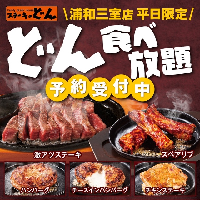 「ステーキのどん」は2022年12月より、埼玉県さいたま市の浦和三室店限定企画として、「どん食べ放題」を3,500円で販売開始しました。