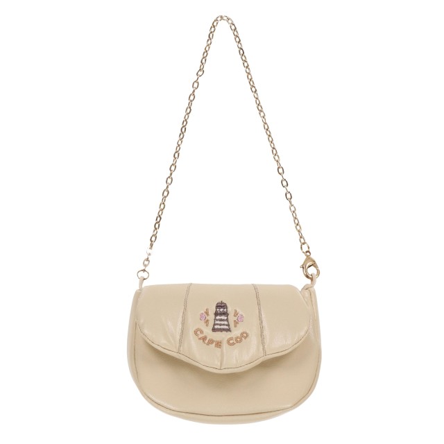 斜め掛けできるゴールドのチェーン付きショルダーバッグ。