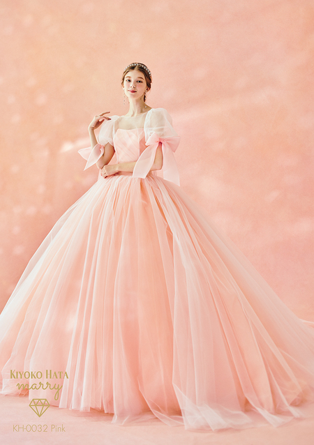 大きなリボンが特徴ですが、シンプルなデザインと、チュールの透明感で、甘すぎないモードなパフスリーブになっています。