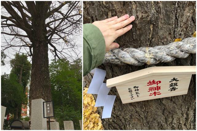 こちらは本殿左に立つ大きな銀杏の木で、神社の御神木です。
