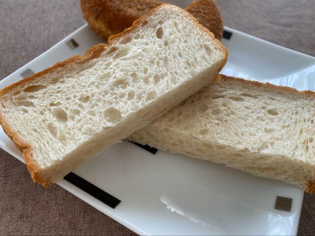 焼かないでそのまま食べるとむぎゅっとしっかり目の噛み心地。耳はハードパンのような食べ応えがあります。パン屋のサンドイッチに使われるパンという感じです!