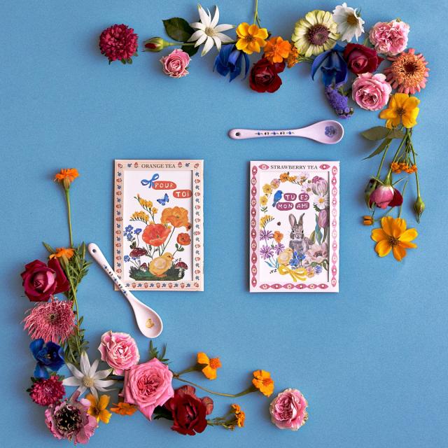メッセージカードのようなパッケージにはフルーツフレーバーの紅茶が。プチギフトやお配りギフトにもおすすめです。