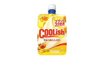 ロッテは、“飲むアイス”の「クーリッシュ」ブランドから、はちみつとバターを使用して、しっかりとした甘さと冬にぴったりの濃厚さも感じられる背徳感のある味わいに仕立てた「クーリッシュ やみつきハニーバター」を1月9日に発売する。価格は162円。