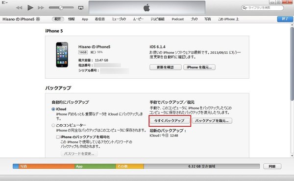 iCloudへのバックアップを利用していると、パソコンとの同期時にバックアップが自動で作成されなくなります。しかし、「今すぐバックアップ」ボタンから手動でパソコンにiPhoneのバックアップを作成することができますよ。