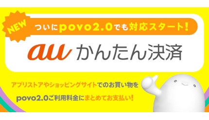 povo2.0で「auかんたん決済」が利用可能に