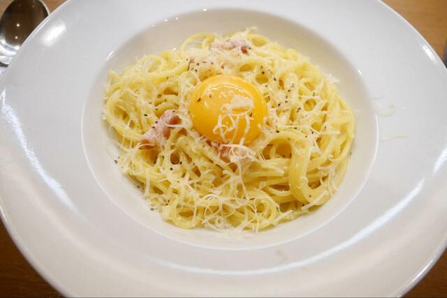 パスタの茹で具合も絶妙で、クリームソースとチーズ、卵の濃厚な味わいが絶品です。