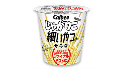 カルビーは、「じゃがりこ細いやつ(決)サラダ」の正式発売を決定した。売っていいかどうかの投票を実施。17万5722票を獲得して正式発売が実現した。