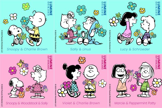 キャラクターステッカーを対象の取扱いショップでピーナッツコラボグッズを含め税込2,200円以上購入した方にプレゼント。6種類すべてコンプリートすると、ひとつの絵柄が完成します。