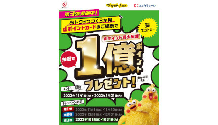なお、2月以降は内容を一部変更し、事前対象期間(1か月半~半月前)に楽天ポイントカードを提示して1ポイント以上獲得すると当選確率が2倍にアップするという。2月度事前対象期間は22年12月16日~23年1月15日。
