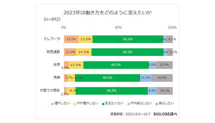 ビッグローブは1月18日、全国の20~50代で働いている男女892人を対象に実施した「働き方に関する意識調査」の結果を発表した。同調査は2022年12月6~7日の期間に行われている。