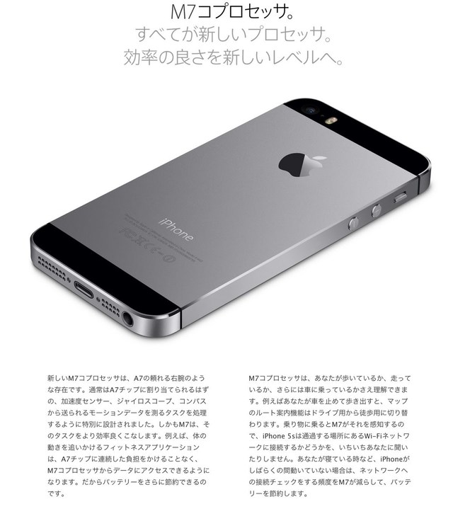 iPhone 5sでは、A7チップの他に「M7コプロセッサ」が搭載されています。