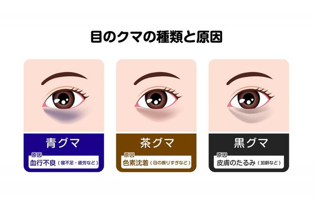 クマは、その原因によって「茶クマ」「青クマ」「黒クマ」の3タイプに分けられます。