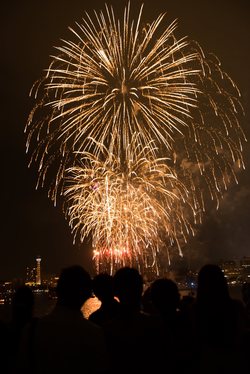 19時。さあ、今回のクルーズで皆さんが楽しみにしていた、船上からの花火鑑賞の時間ですよ!