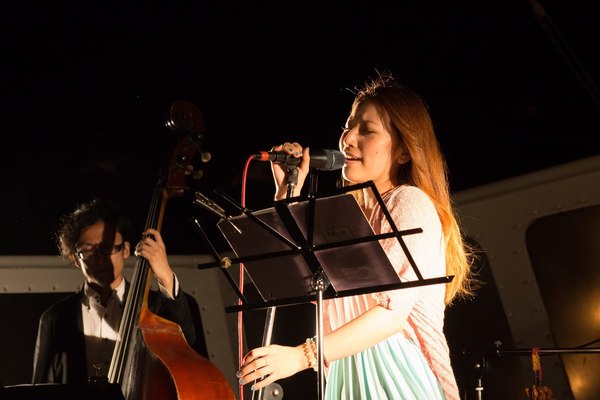 30分間、たっぷりと花火を満喫したら、続いてはスカイデッキでのミニライブ。2009年に公開された映画「真夏のオリオン」の主題歌でメジャーデビューした「いつか」さんによるコンサートです。