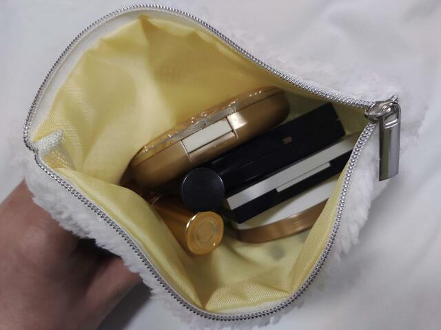 ポーチはメイク用品、トラベルサイズの化粧品のみならず、携帯電話、キーケース、ミニ財布を入れることもできました。