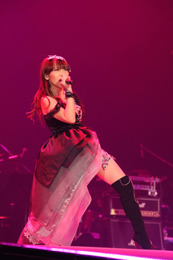 「10年前はさいたまスーパーアリーナ隣のけやき広場で路上ライブをしていました。このステージまでの25m、とっても長かった!」と今日この日の感動を語ってくれた。次はデビュー曲『明日へのbrilliant road』を含んだスペシャルメドレー。とにもかくもオーディエンスを煽り盛り上げる技が光る。気がつくと一緒になって熱狂! 合唱しているのだ!