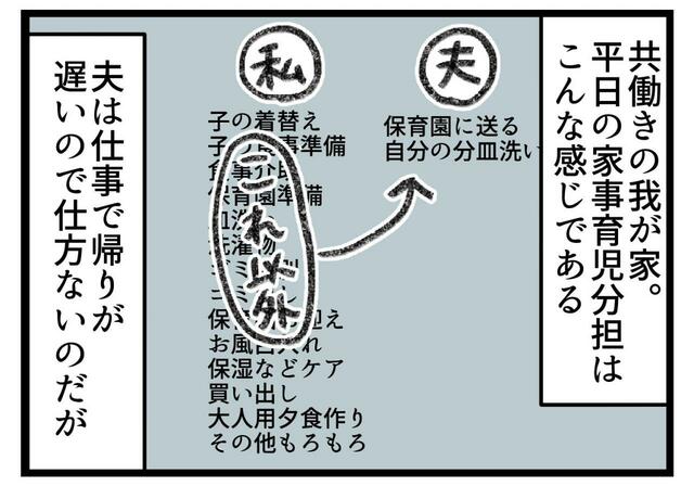 夫は仕事の帰りが遅いので、この分担に不満があるわけではないですが…。