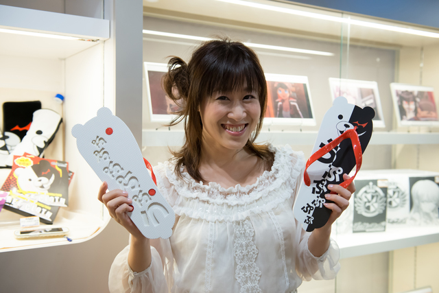 他にも大本さん、キャラクターのねんどろいどやモノクマのペットボトルホルダー、フリークロス、ラバーストラップなどを見て、思わず笑みがこぼれていました!