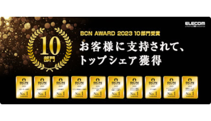 エレコムは1月19日に、BCNが主催する「BCN AWARD 2023」を10部門で受賞したと発表した。