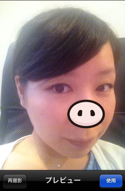 こちらも使い方は、ぐんまちゃんと同様。タップしてスタンプの位置を動かして撮影できます。モチーフの豚の鼻のスタンプもあります。