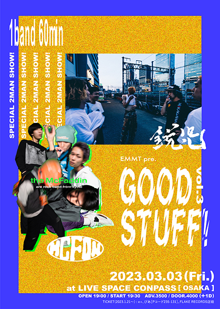 昨年8月、大阪・CONPASSにて初開催された新進気鋭イベント『GOOD STUFF』の第3弾が、3月3日(金)に開催される。第3弾として発表された組み合わせは、昨年フジロックなどにも出演を果たしたオーディエンスを圧倒するライブパフォーマンスで今話題沸騰中のバンド・鋭児と、VJもメンバーとして在籍しており、ライブではVJの他、持ち込みの照明など視覚も含め派手なライブパフォーマンスで定評がある地元関西のバンド・the McFaddinによるツーマンイベント。