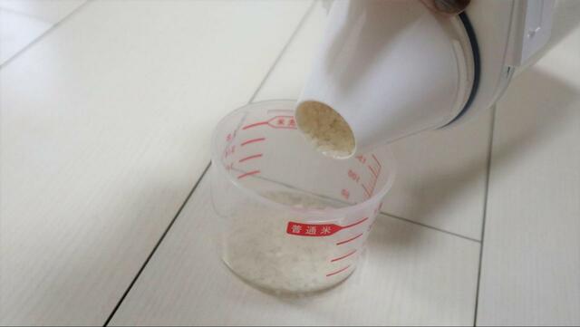 これで、わざわざ25kgの米袋から5kg分をケースに取り分けて、さらに炊く前に冷蔵庫から大きなケースを取り出し、中のお米を計量カップで5回すくうという、面倒な作業から解放されます。