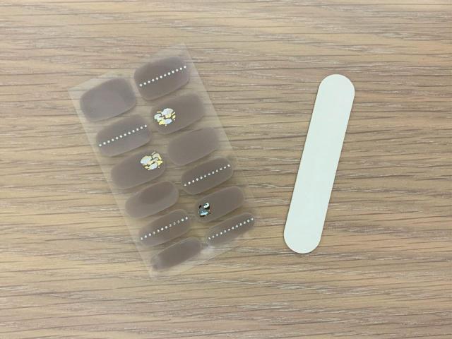 こちらも、袋の中には12枚1シートのネイルシールとネイルファイル(爪やすり)が入っていました。