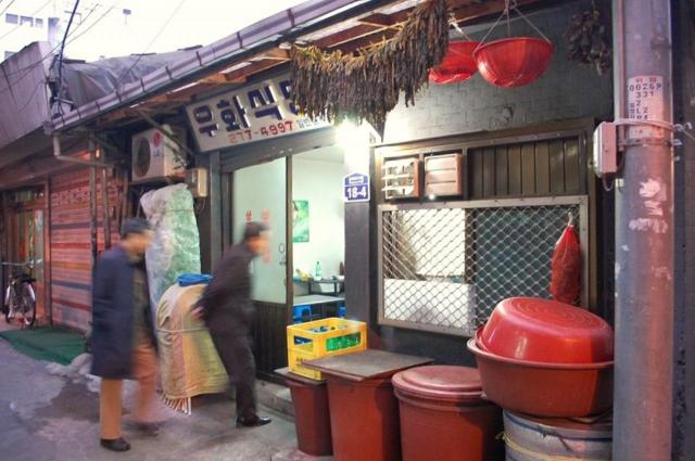 ありし日の乙支路3街「ウファ食堂」。軒先で大根の葉を干している