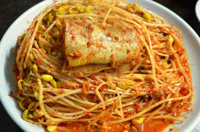 「ウファ食堂」の看板メニューだった鱈と豆モヤシの激辛煮