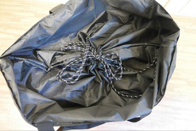 開口部が巾着仕様になっているので、バッグの中を隠せます。