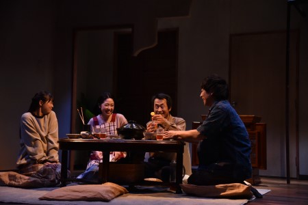 舞台上では、旭家のリビングで現代(2022年)のパートと二十数年前の過去のパートが入れ替わりながら展開する。過去のパートは母親の死後、引きこもりとなってしまった10代の泰子(遥りさ)、幼馴染の輝明(岡野一平)、父・陽一(有薗芳記)を中心に進み、泰子の様子を見に来た教師(辻本みず希)も加わり、4人が“疑似家族”のようになっていく。